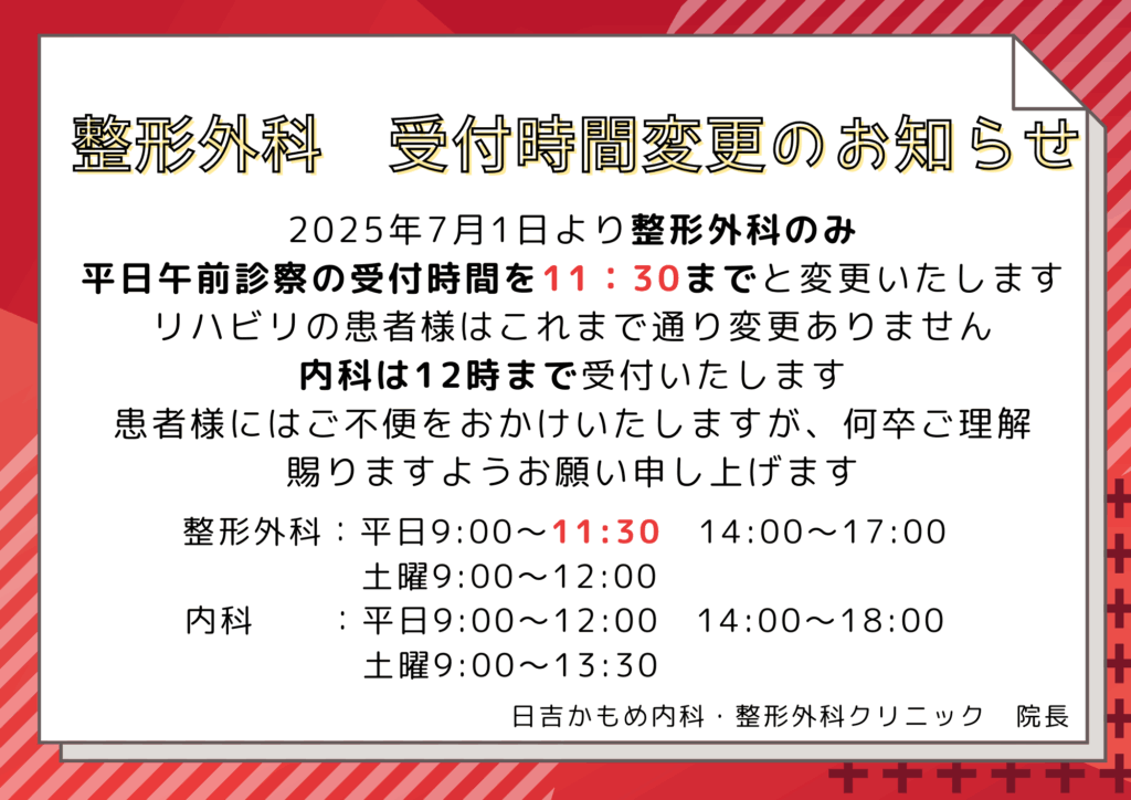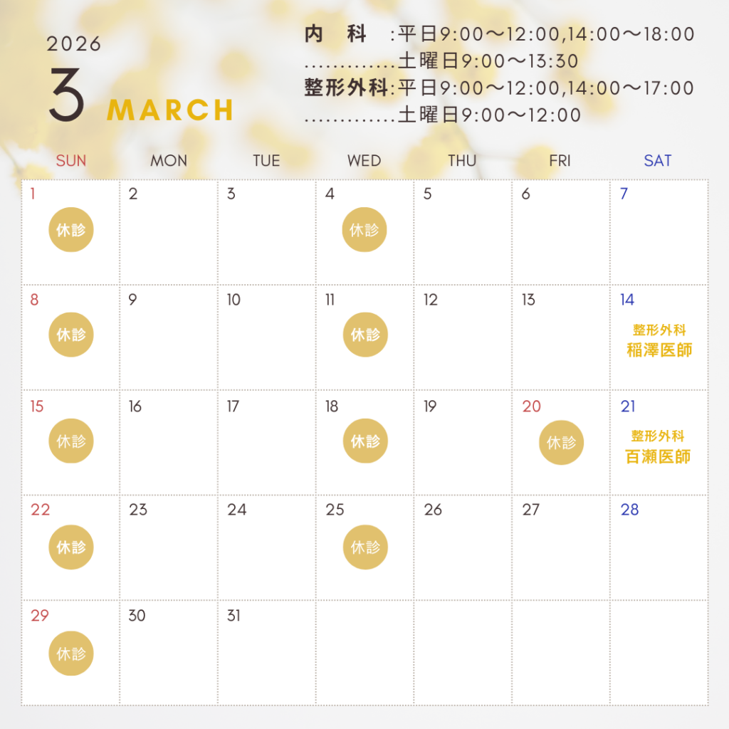 3月の診療日と土曜日整形外科担当医師のシフト変更のお知らせ